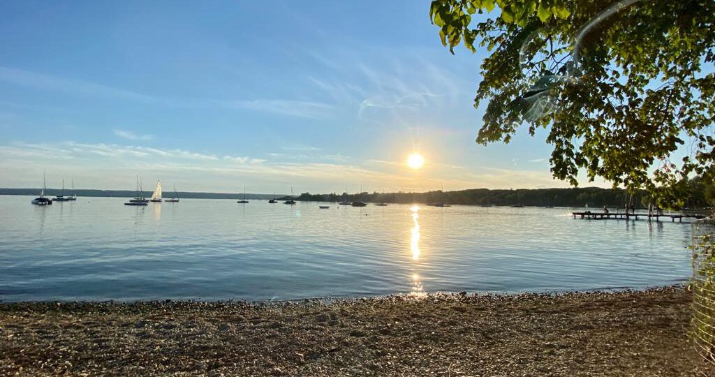 Der Ammersee liegt in ca. 5 Minuten Fahrweg entfernt zu unserem Queri.